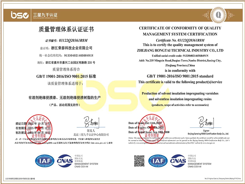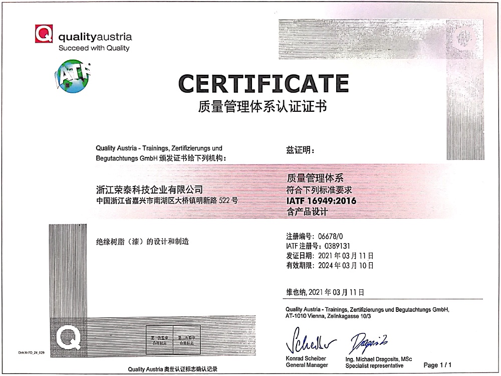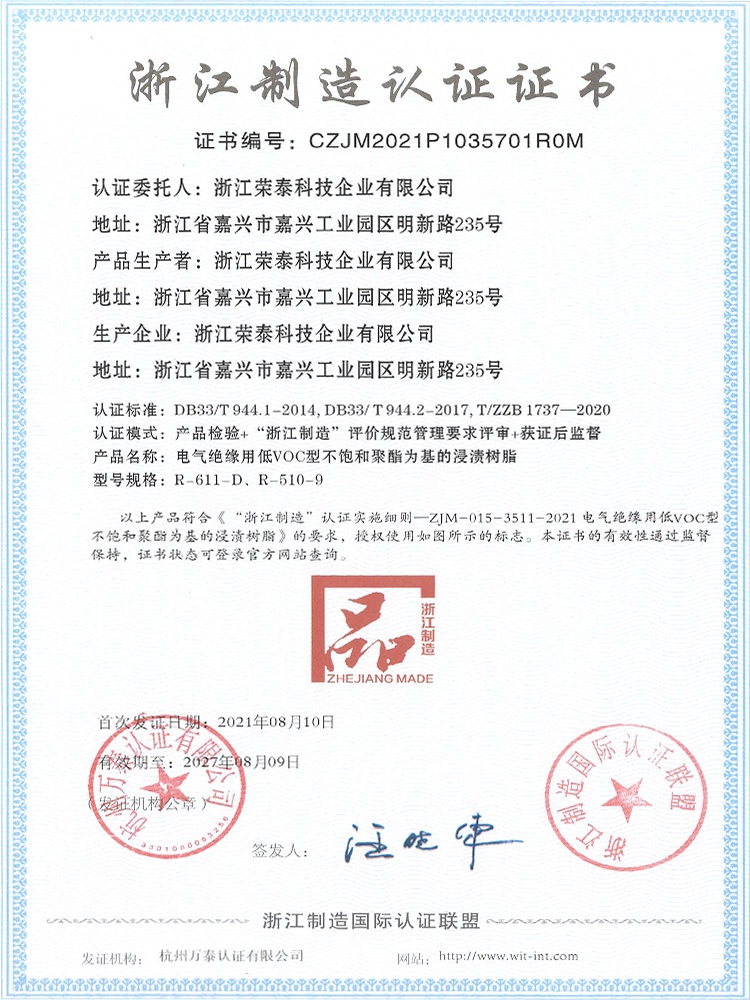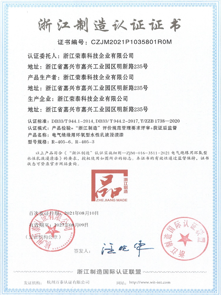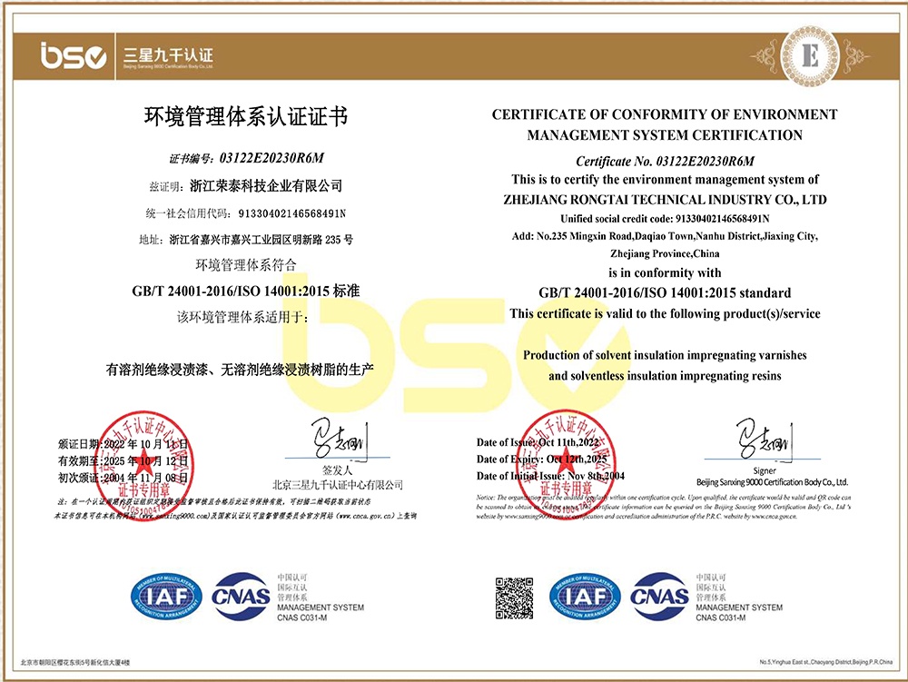浙江榮泰科技企業(yè)有限公司為專業(yè)生產(chǎn)高性能絕緣材料的國(guó)家高新技術(shù)企業(yè)、國(guó)家“小巨人”企業(yè),為國(guó)內(nèi)最大?的絕緣漆生產(chǎn)商,全國(guó)絕緣材料行業(yè)協(xié)會(huì)的副理事長(zhǎng)單位,規(guī)模、產(chǎn)品技術(shù)和創(chuàng)新能力處于同行業(yè)領(lǐng)先地位。